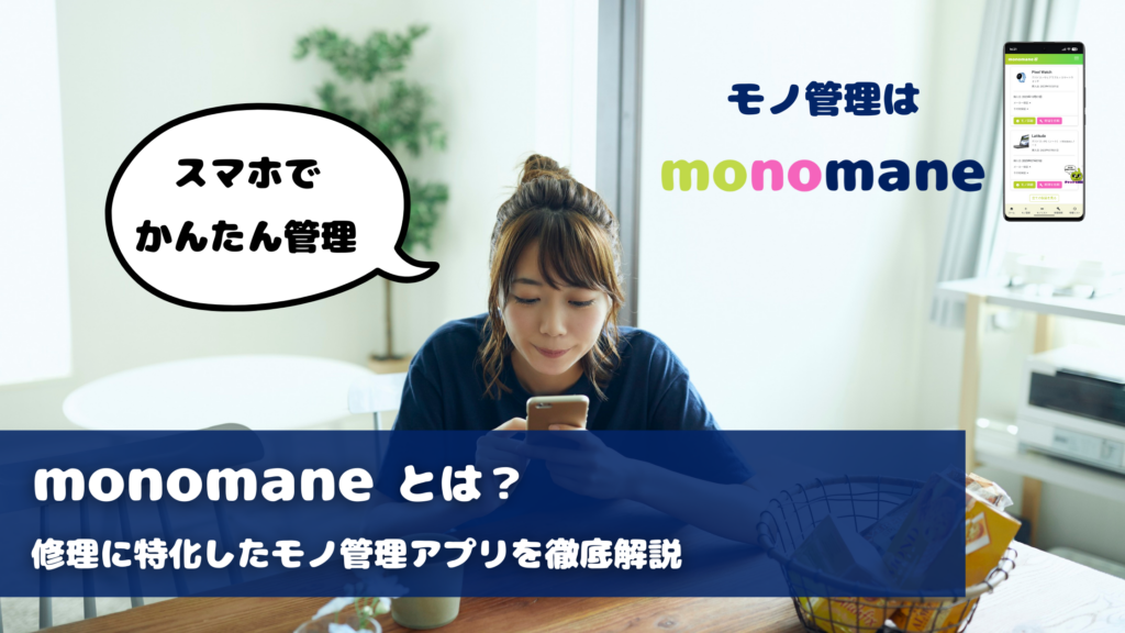 monomane(モノマネ)は、無料であらゆるモノの情報をデジタルで一元管理できるサービスです。故障があれば、登録した情報をもとに快適に修理を依頼できることが最大の特徴です。